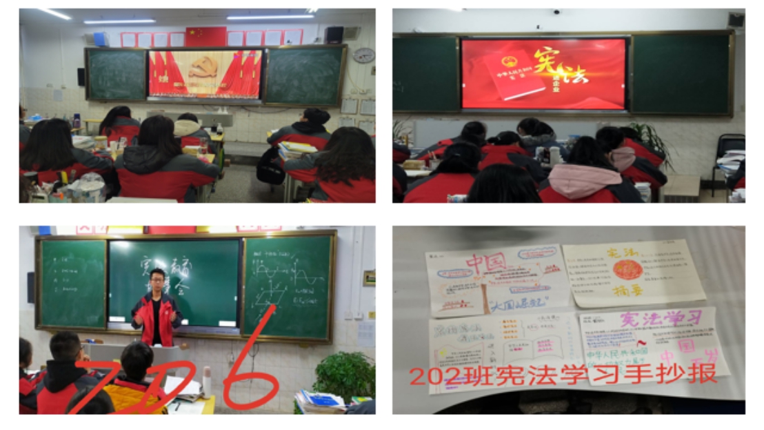 四、学生发展中心组织各班召开了国家宪法日主题班会,向学生宣传《宪法》、《教育法》、《预防未成年人犯罪法》等法律知识。引导学生自觉学习宪法法律知识,树立宪法法律观念,弘扬宪法精神,维护宪法权威。