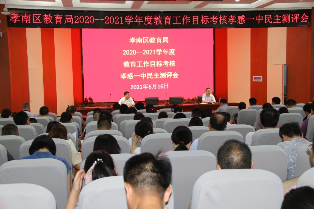 6月16日下午2:30,区教育局基教科科长张建国一行4人来我校进行一年一度的年度目标考核,全体教职员工在学校学术报告厅参加了会议。张科长在会上提出了此次考核会的要求,他对一年来学校取得的成绩表示祝贺,对广大师生的辛勤工作给予了表扬,他希望各位教职员工要一切为了一中的长远发展,本着实事求是的原则客观地评价学校领导干部的工作。