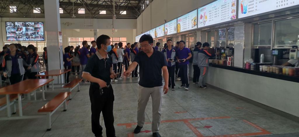 11点20分,来宾一行查看了学生宿舍、食堂就餐情况。他们有的在食堂窗口拍照,有的询同学对就餐的看法,有的向食堂负责人了解情况。