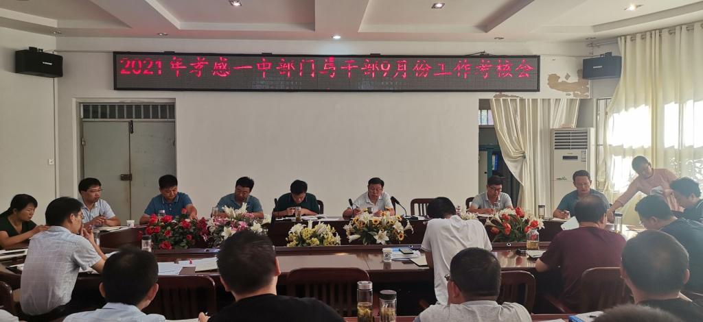 10月4日下午,学校在2号会议室召开了孝感一中9月份行政干部考核会,会议由副校长叶显斌主持。会议首先对三年来部门与干部任职进行了综合考评。评出了校办、资保中心、教研中心三个先进处室,15个先进个人;各部门、年级负责人与学校负责人签订责任书。