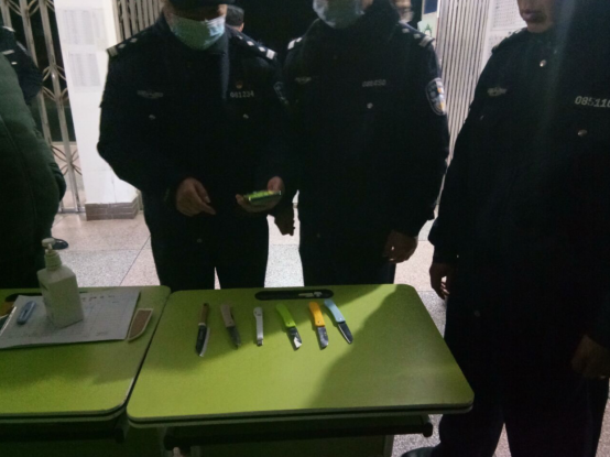 安全工作大于天,开展管制刀具检查能够有效地防范学生人身伤害事故的发生。公安民警和学校领导提前到达学生寝室门口,对管制刀具工作进行人员安排和流程确认。