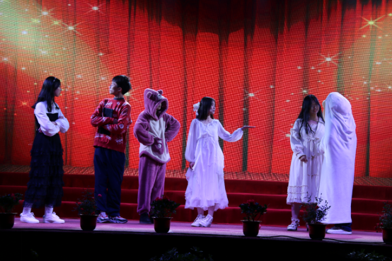 在学校生活中发生的《学习趣事》则更贴近学生,学生感同身受,更加聚精会神地观看表演。