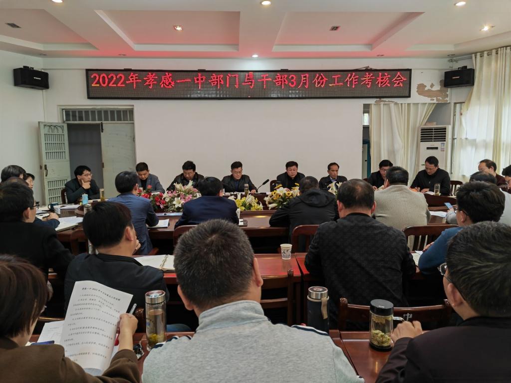 孝感一中3月份部门、干部考评会于4月4日下午在2号会议室召开,会议由副校长叶显斌主持,学校全体行政干部参加了会议。
