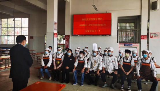10月12日,校长梅建辉、分管副校长叶显斌一行到食堂慰问疫情期间一直坚守在一线的食堂工作人员。