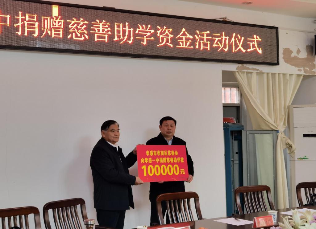 孝南区慈善会在仪式上与孝感一中签订了慈善助学合作协议书,并捐赠助学金10万元用于资助家庭困难、品学兼优的学生,帮助他们解生活之困,激励他们发奋图强、锤炼品格,用奋斗成就未来。