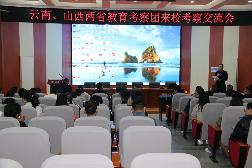 2023年3月23日上午,云南、山西考察团一行62人来我校开展了考察交流活动。学校校长梅建辉、副校长祝亮、党委委员章雄林、工会主席杨顺云、校办主任谢训存等学校领导全程参与了接待活动。
