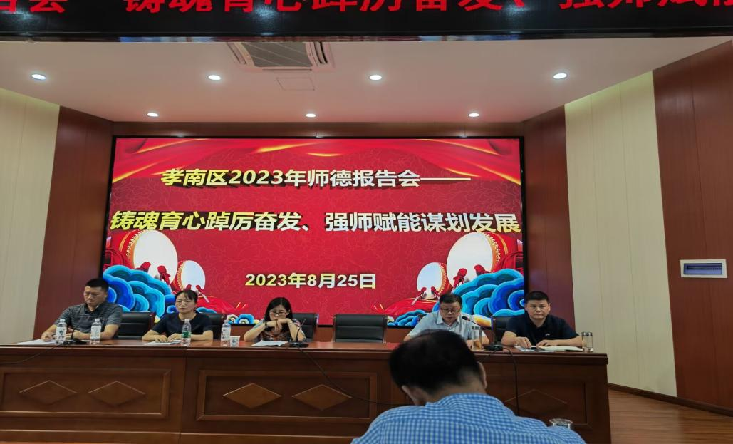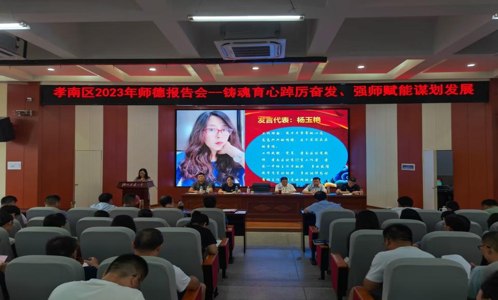 九点至十一点,由孝南区教育局组织的师德师风报告团的优秀教师到我校进行宣讲。随行参会的领导有区教育局副局长陶文辉同志,教育局监察局负责人胡新如同志,教育局监察局副主任王成俊同志。报告会由胡主任主持。孝南区教育系统2023年暑期集训讲师团的三位教师代表不仅给我们分享了他们的教育心得,还倾情讲述了从教多年的生动案例。