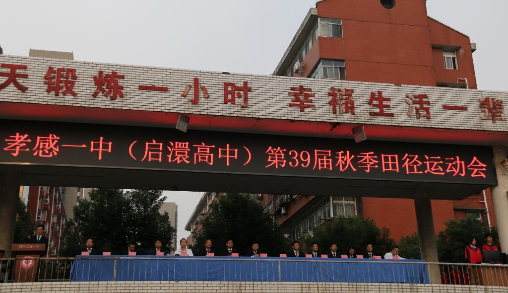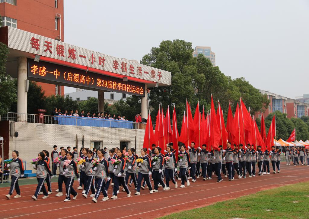 校长梅建辉同志宣布“孝感一中、启澴高中第39届秋季运动会开幕”。