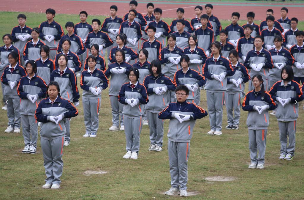高一年级广播体操刚劲有力,横平竖直的规范也不失跳跃的活泼,是平时日常训练的缩影。