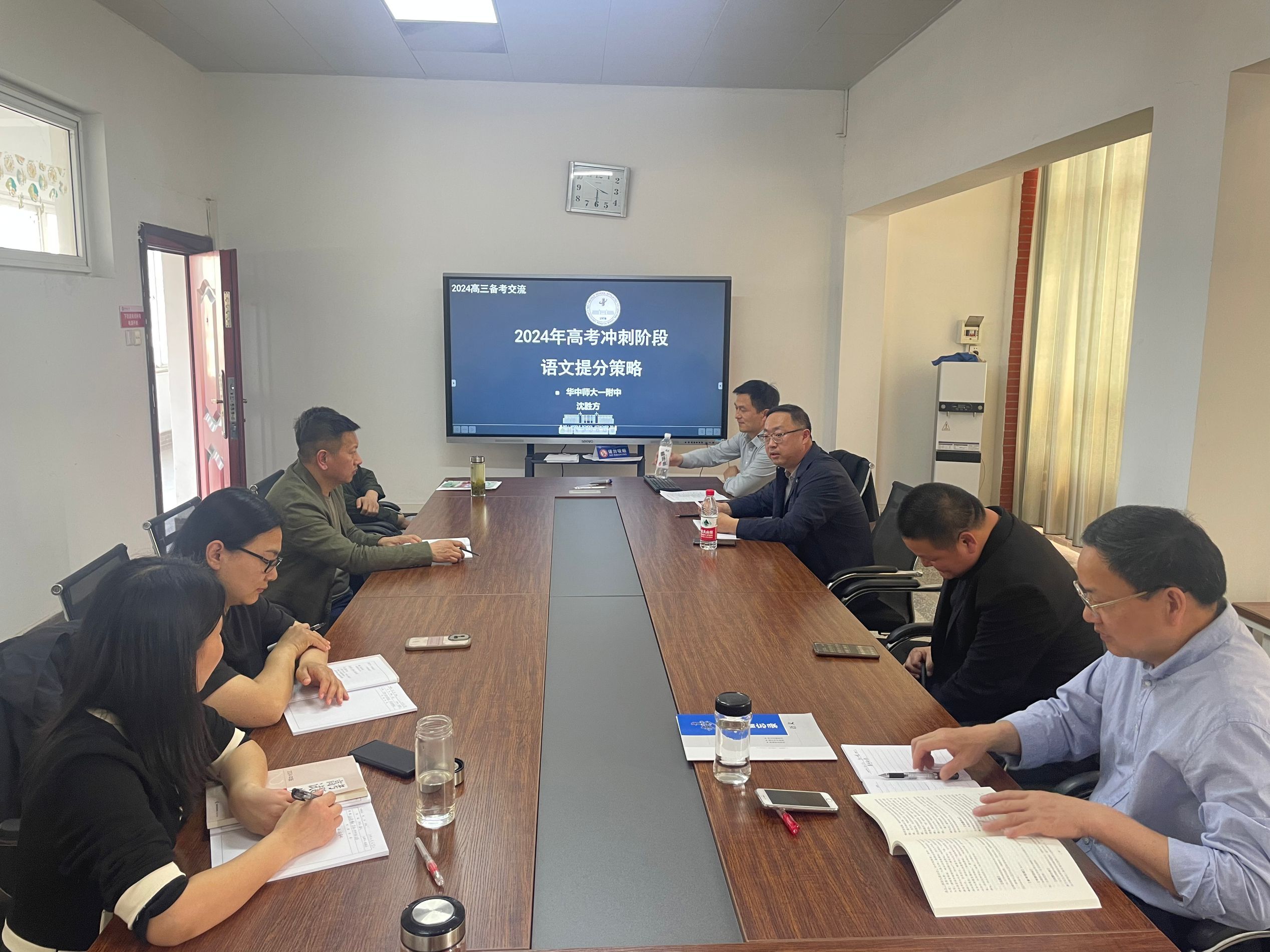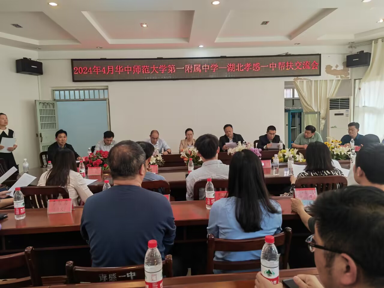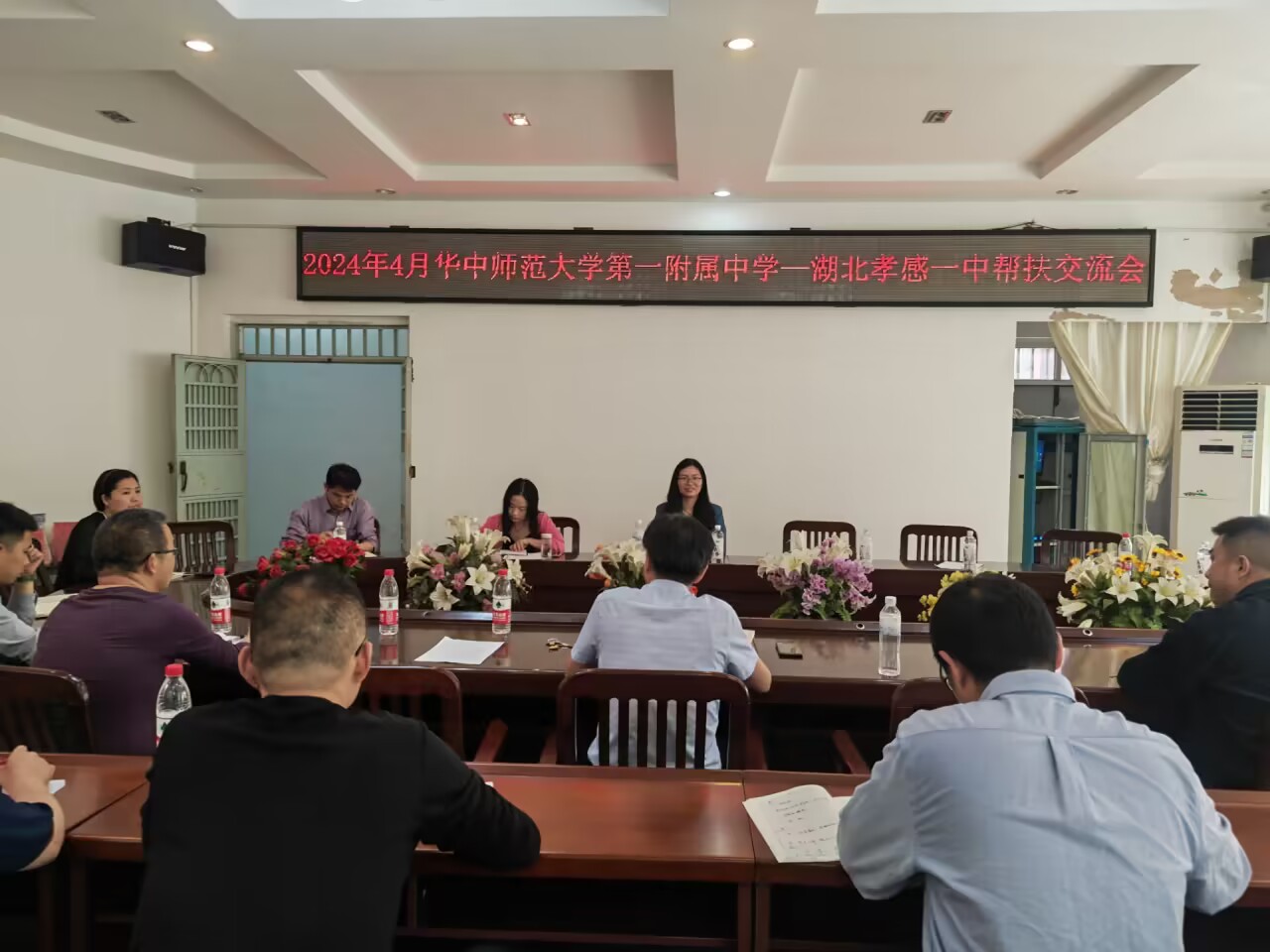 4月15日下午,在孝南区区委区政府的邀请下,华师一附中一行12人在校长周鹏程的带领下驱车来我校举行教学交流活动。