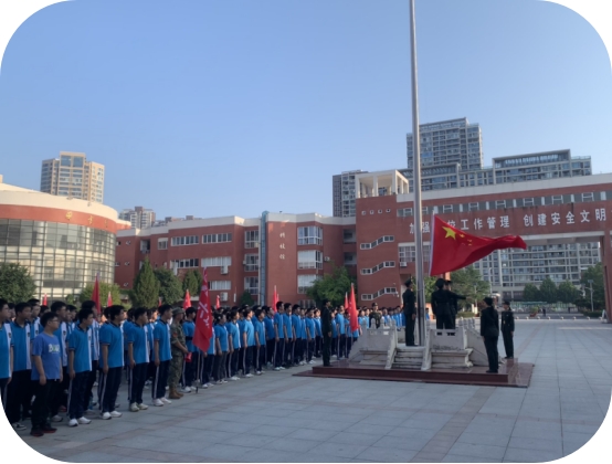 伴随庄严的国歌声,五星红旗冉冉升起。在灿烂朝阳的映衬下,同学们身着崭新的校服,队列整齐,昂首挺胸,目光坚定,做好了迎接一切挑战的准备。