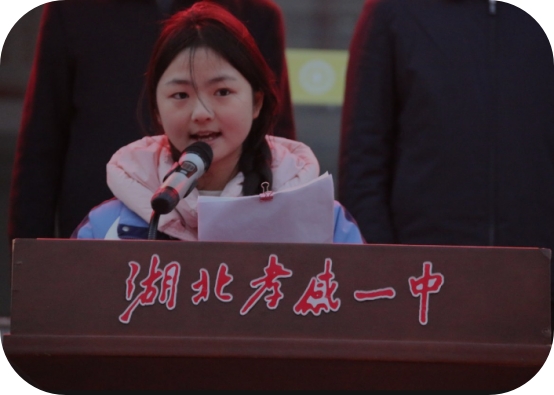随后,107班杨曼同学作为学生代表上台发言。她对学校各个岗位辛勤付出的工作人员表达了深深的谢意,是他们无微不至的关怀并提供舒适祥和的校园环境,才使得同学们能够安心学习。她呼吁同学们要以更加饱满的热情、更加昂扬的斗志投入到新学期的学习生活中,努力拼搏,不负青春。