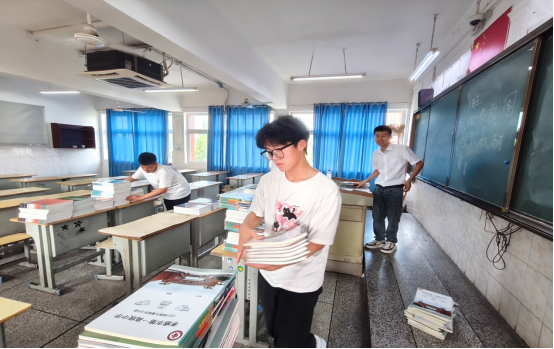 7月19日,高一新生报到的前一天,这些2025年刚毕业的志愿者们就提前来到学校,打扫教室,搬运书籍资料,分发班级名册,粘贴指引标识……一切准备工作都做得那么细致。