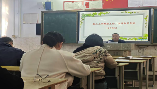 颁奖仪式结束后,高二年级班主任、备课组长例会紧接着在年级走班教室召开。会议由年级副主任徐群先主持,全体参会人员围绕11 月工作复盘与 12 月重点任务部署展开深入交流,为接下来的教育教学工作明确方向。