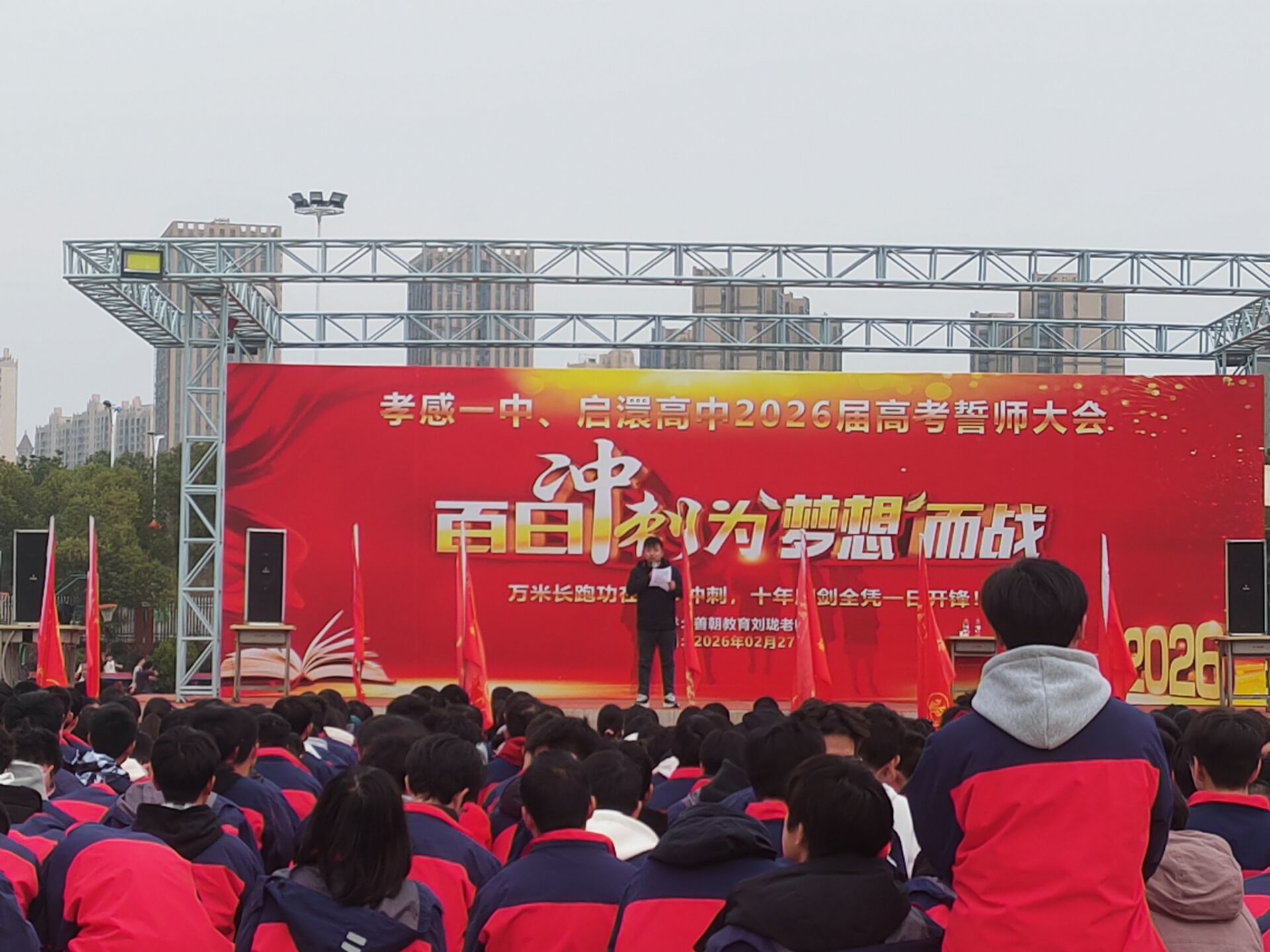 百日磨砺,今朝亮剑;同心逐梦,未来可期。此次誓师大会,为全体高三师生注入强大精神动力。相信在未来一百天里,孝感一中、启澴高中全体高三学子定能以梦为马、不负韶华,全力以赴、奋勇拼搏,在2026年高考中旗开得胜、金榜题名!