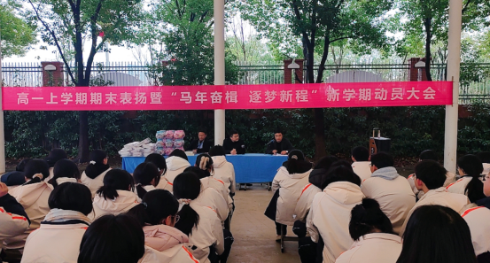 3月1日下午,斜风细雨,乍暖还寒。为表彰先进、总结经验、鼓舞士气,明确新学期奋斗目标,高一年级全体师生齐聚学校风雨棚,隆重举行期末考试总结表彰暨新学期动员大会。年级管理团队、全体班主任及高一年级全体同学参加了会议。