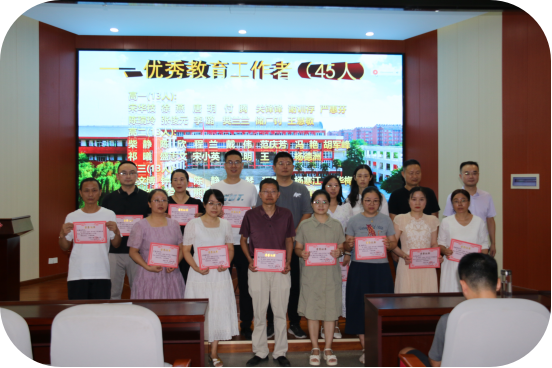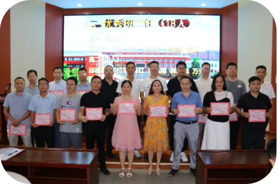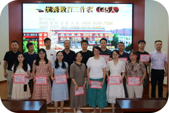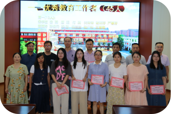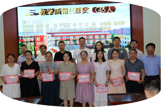 在一片喜庆祥和的氛围中,主持人辛校长热情洋溢地宣读了学校《关于2023--2024学年度下学期评先评优的表彰决定》:“宋华枝等45人被评为优秀教育工作者,董振坤等18人被评为优秀班主任,宋华枝等45人荣获教学质量优胜奖,谢训存等10人被评为教科研先进个人,刘刚被评为先进学科中心主任,戴伟等3人被评为先进备课组长,校办被评为先进处室,高三年级被评为先进年级,历史学科中心被评为先进学科中心,高一化学备课组等3个备课组被评为先进备课组,101班等18个班级被评为先进班集体,涂建伟等15人被评为优秀党员。”