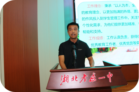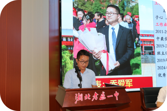榜样的力量是无穷的。大会还邀请了优秀教师代表钟华志、优秀班主任代表乔爱军、优秀备课组组长戴伟、优秀管理干部代表王力分别上台发言,分享了自己在教学与管理工作中的宝贵经验和成功做法。代表们的精彩的发言赢得了老师们热烈的掌声,鼓舞了全体教职工要团结协作,任劳任怨,勇担责任、敢于创新,不断提升自己的教育教学能力及管理水平。