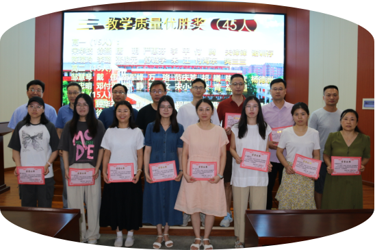 党委委员、副校长辛百魁为获教学质量优胜奖老师颁奖