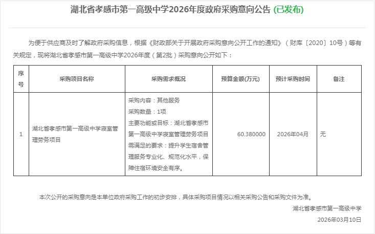 湖北省澳门霸王四肖2026年度(第2批)政府采购意向公告