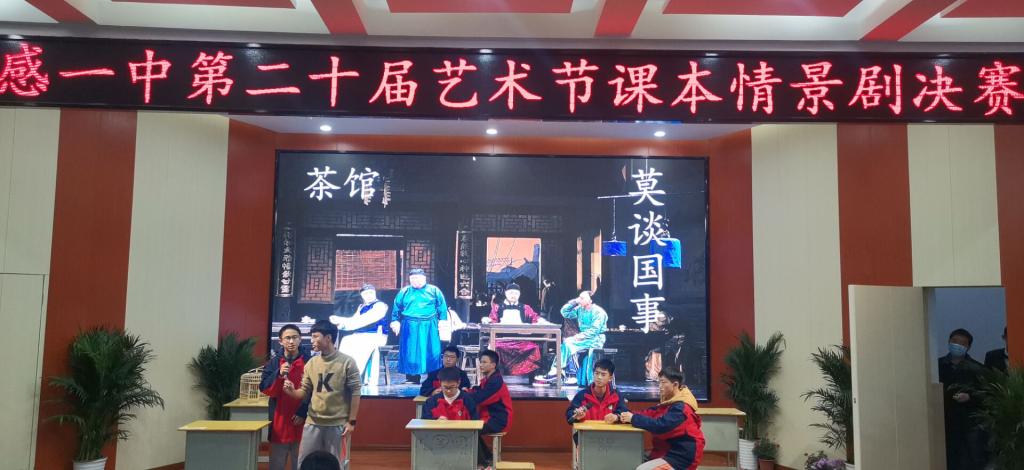 在孝感一中第二十届文化艺术节期间,由学发中心主办,高二年级承办的课本情景剧分别在12月10日、12月15日举行了初赛与决赛,比赛精彩纷呈,高潮迭起,评委们经过慎重考虑打分,最终确定了花落谁家!