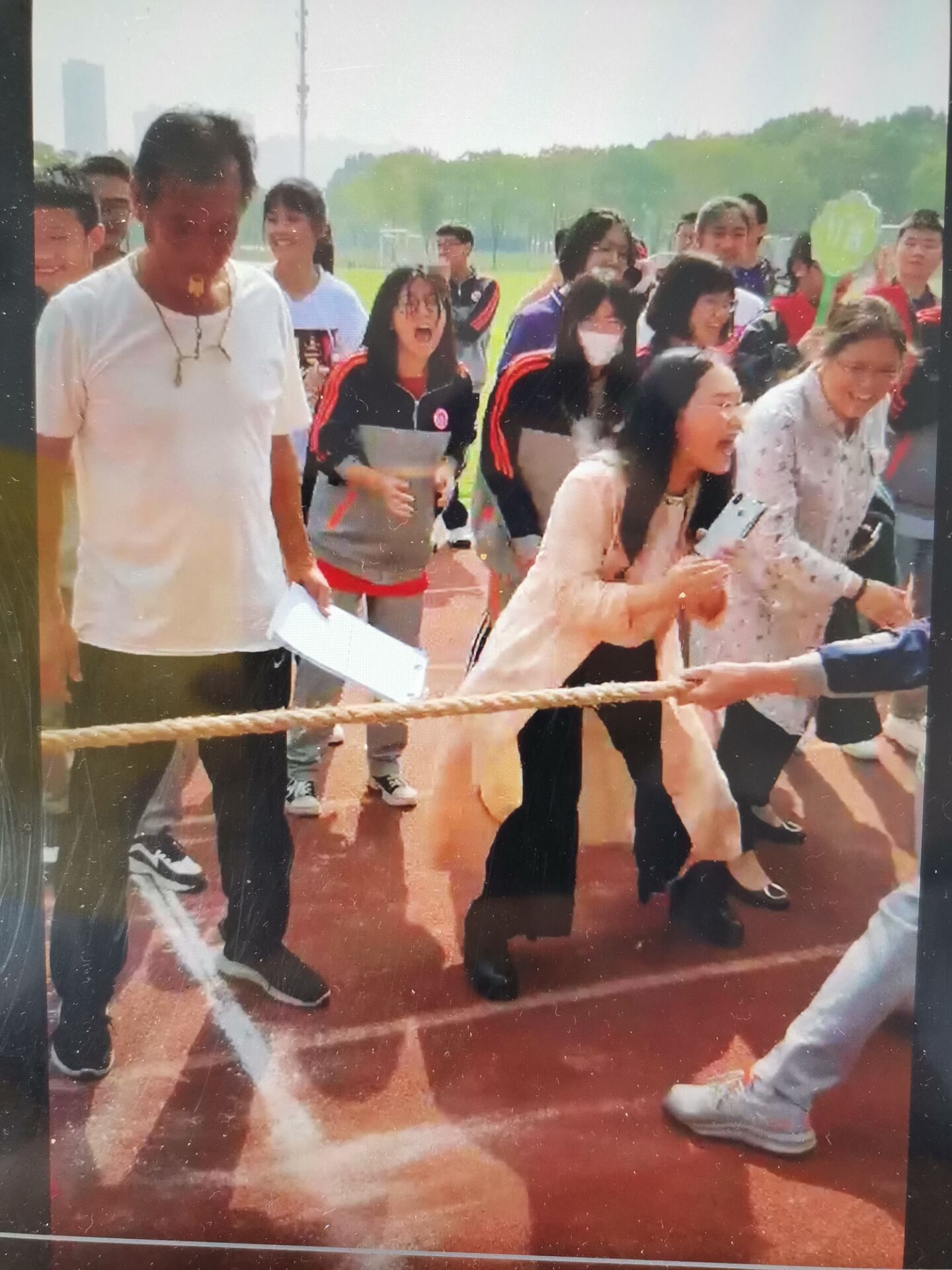 为丰富同学们的课余生活,增强同学们的身体素质,培养竞争意识和团队协作精神,进一步促进学生德、智、体、美全面发展。9月24日、25日大课间,高二年级组织学生在校园田径场上举行了一次别开生面的拔河比赛。