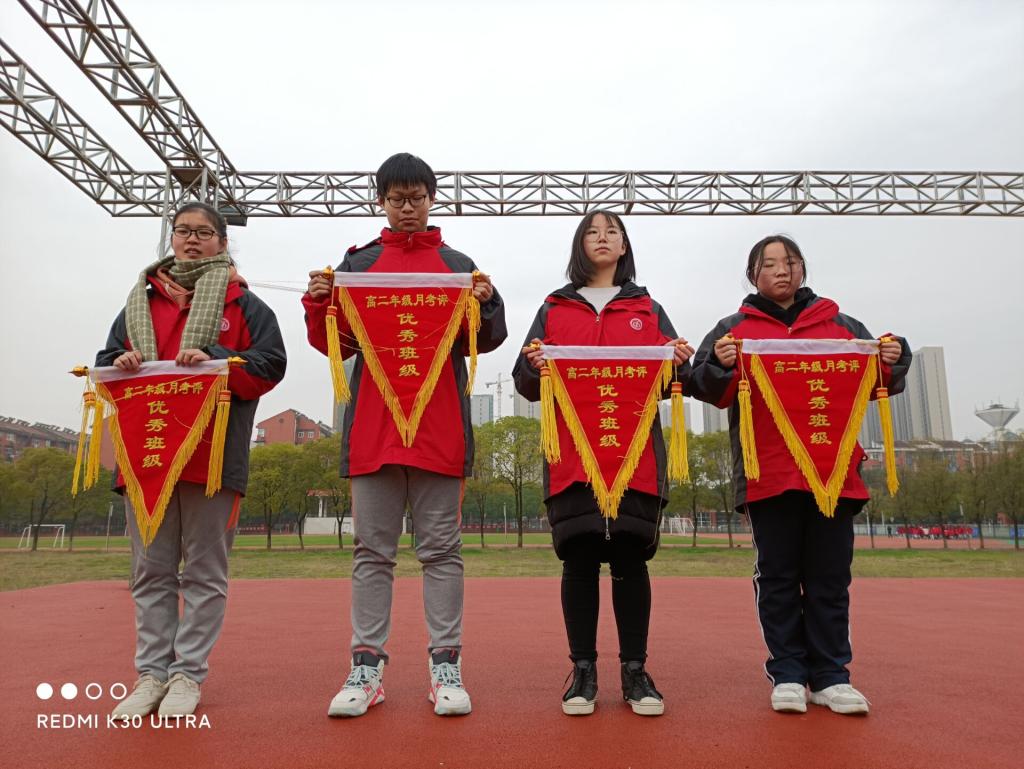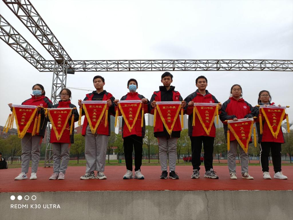 11月26日上午课间操时间,高二年级对10月月考核优秀班级、文明卫生寝室举行了授旗仪式。