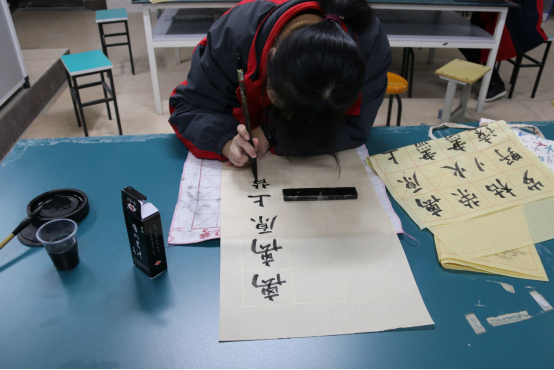 当天下午班团活动课时间,艺术节书法比赛在吴海舟老师的精心组织下成功举行,共有50多位学生分别参加了硬笔书法和毛笔书法比赛。书法比赛旨在更好展示中国书法文化,丰富校园文化建设,用墨香装扮校园。