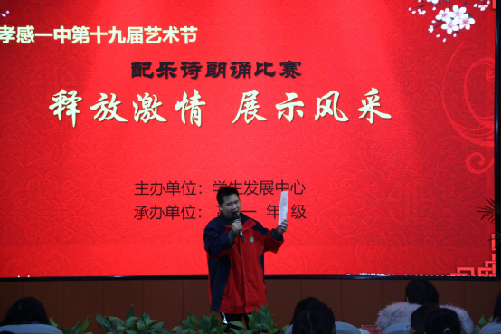 12月16日晚七点,孝感一中第十九届艺术节——配乐诗朗诵比赛决赛在多媒体报告厅举行。配乐诗朗诵比赛由学生发展中心主办、高一语文组承办。进入决赛的节目共有10个。现场同学们铿锵有力的气势,充沛饱满的感情,自信大方的形象赢得老师和同学们阵阵掌声。经过激烈的角逐,高一(7)班熊子梁同学朗诵的《青春中国》以9.6分荣获一等奖;高二(18)班周雨欣和向昭同学、高二(1)班余苗同学分别获得二等奖;现场师生向喜获三等奖和优胜奖的同学们表示祝贺。