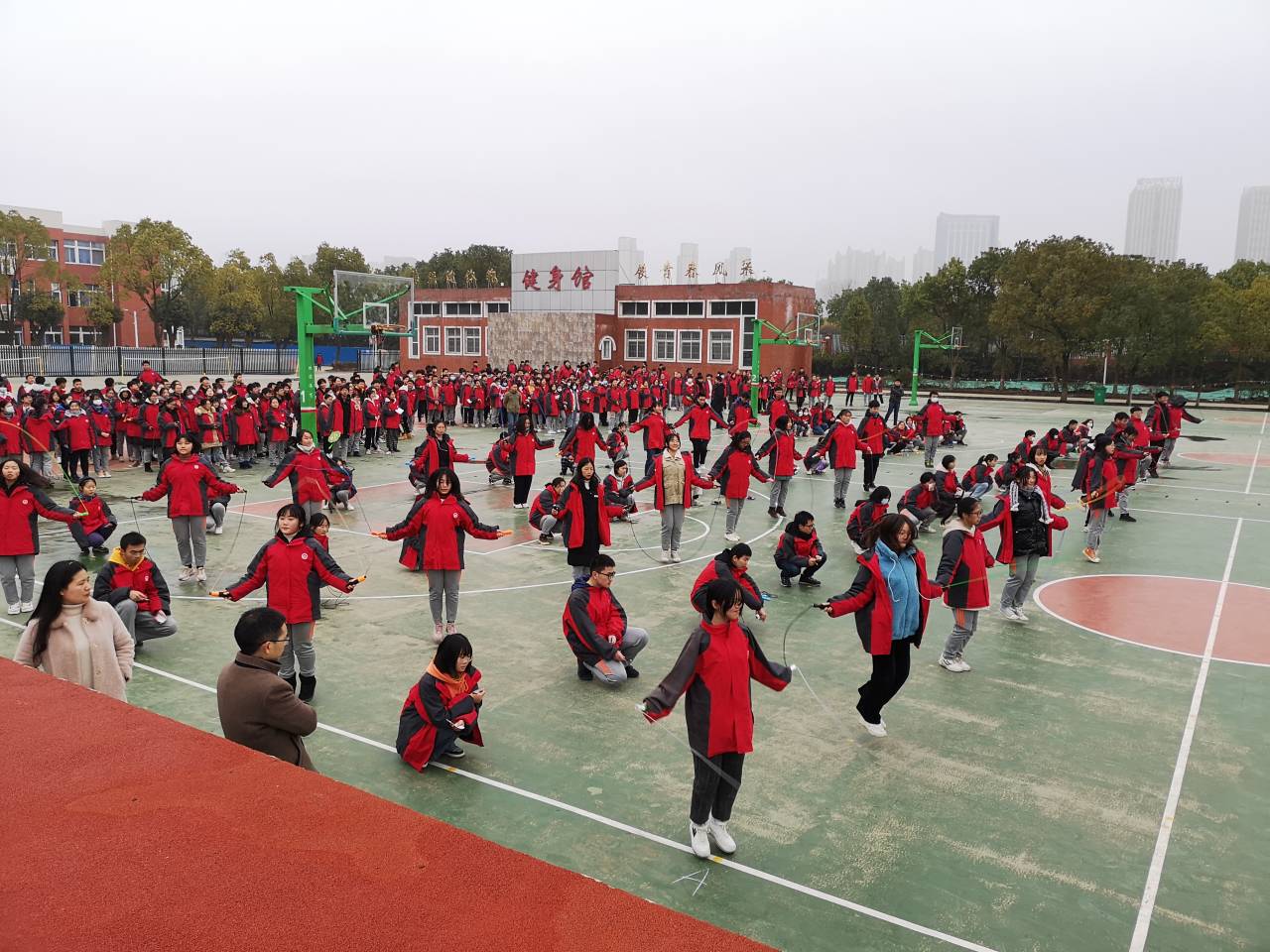 为丰富校园文化生活,增强学生的体质,培养学生团结、拼搏的精神,2月6日高二年级利用上午课间自习的时间举行了跳绳比赛。