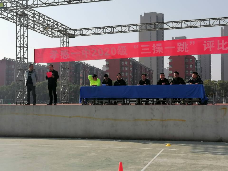 12月5日下午,天空晴朗,阳光灿烂,高二年级18个班级在学校篮球场进了“三操一跳”(广播体操、武术健身操、跑操、跳绳)大比武。学校各年级体育老师担任裁判,高二学生分会干部协助评判,比赛由高二体育老师张宏主持。级部主任付绍斌在比赛开幕时发表了热情洋溢的动员讲话,他希望同学们在比赛中全力以赴,赛出风格与水平,展示班级风采。随后,主持人介绍比赛规则与流程,18个班按要求分坐主席台两侧,各班统一了校服,备好了班牌与跳绳。