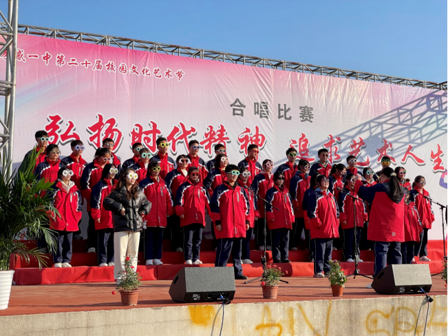赛场上飞扬着青春的旋律,同学们凭借着整齐嘹亮的歌声、完美的表现在比赛中展现自我,赛场下观众沉浸其中,不时爆发出阵阵热烈的掌声。