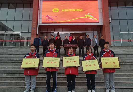 随着入场音乐响起,各年级各班级从不同路线有序入场,整齐列队。6点55分闭幕式正式开始,庄严的升国旗奏国歌仪式后,总裁判长徐鹏高老师宣布本次运动会获得团体总分前八名、优秀组织奖和精神文明奖的班级。我校各位领导分别为获奖班级颁奖留念并表示祝贺,全体同学和老师向获奖班级报以热烈的掌声。