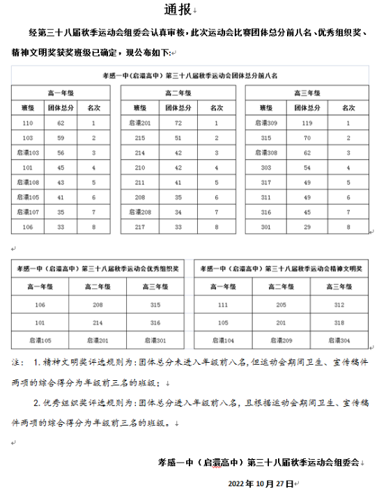——孝感一中(启澴高中)第三十八届秋季运动会闭幕