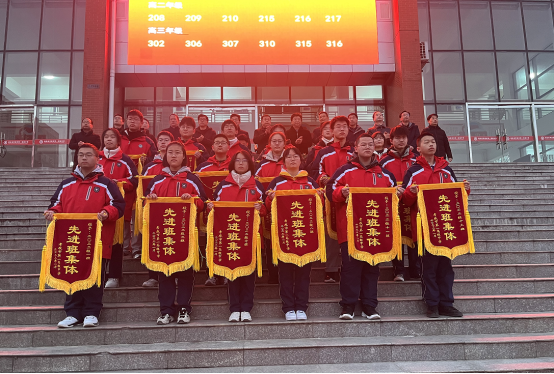优秀的班头必然有一群可爱的同学相伴,优秀班集体就是对班主任工作最为有利的肯定。辛校长、叶校长和祝校长分别为三个年级共18个班级颁发锦旗。