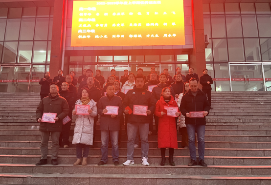 在上一学期全体师生的共同努力下,我校取得优异成绩,其中班主任们的辛苦付出那是历历在目。为树立榜样,继续前行,由梅校长和付书记为获得“优秀班主任”荣誉称号的老师们现场颁奖,那红色的荣誉证书既是凭证也是鼓励。
