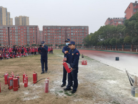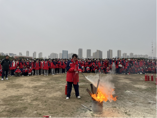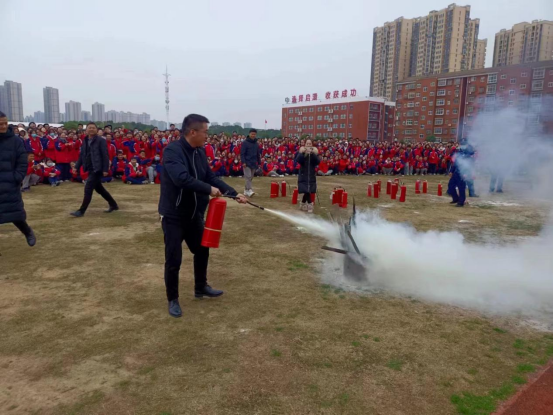 整个演练过程既紧张又有序,全体师生用时约3分钟完成了安全撤离并到达指定点集合,达到了预期效果。到达指定集合地点后,孝南区消防救援大队丁参谋为高一师生讲解灭火器的相关知识,正确使用方法和注意事项。现场演示了灭火器的操作过程,之后又组织学生进行实际操作。