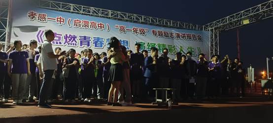 夏日的傍晚,夕阳西下,片片红霞与朵朵白云各自映照半边天幕,操场上高一年级全体学生和班主任老师正襟危坐,队列整齐。18点整,动感的音乐响起,激情的演讲正式拉开帷幕。