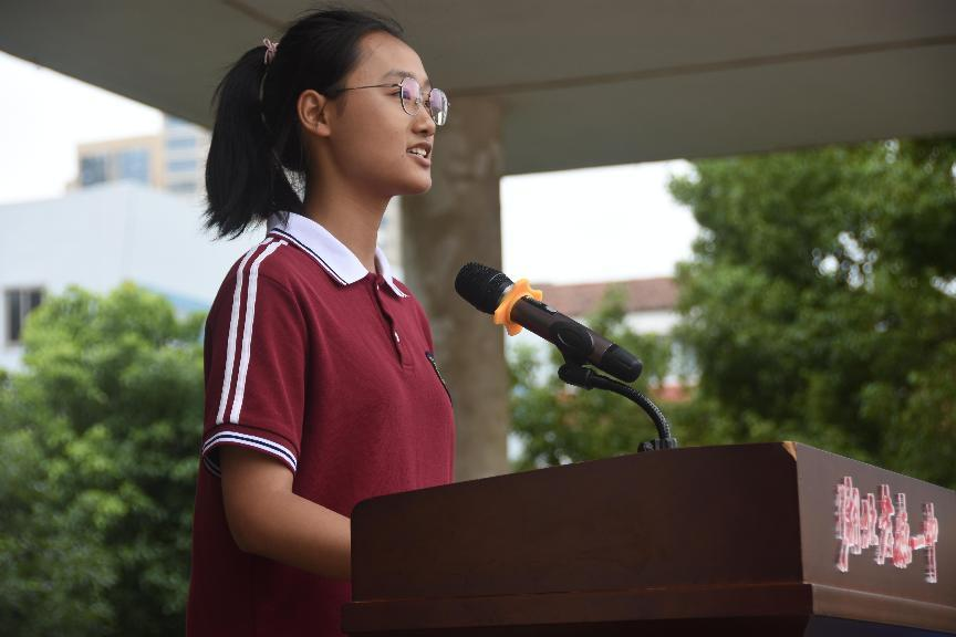 来自高一(12)班的严思雨同学作为优秀学员代表发言,一周的军训强健了体魄,磨炼了意志,强化了组织纪律性,这对同学们的高中学习和生活必将产生深远的影响。