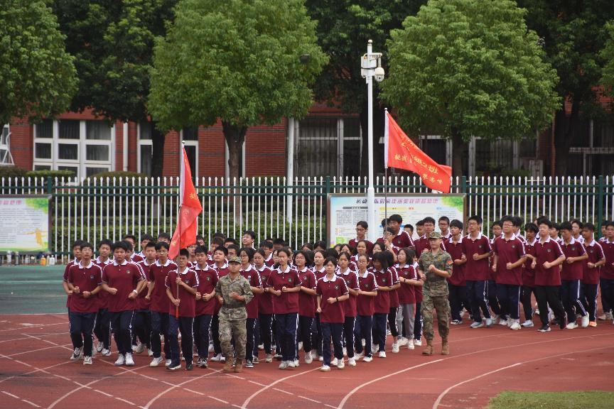 伴随着雄壮的军歌,为期一周的高一新生军训在梅建辉校长的宣布声中顺利落下帷幕。