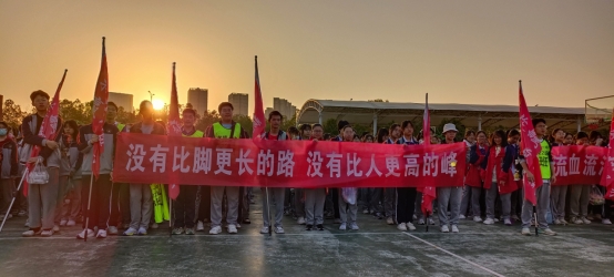 早上6:45分,朝霞映照东方,空气格外清爽。参加活动的全体师生及家长,在篮球场整装集结。级部主任柳俊同志向全体同学强调了本次活动的重要性以及目的,在提醒所有师生沿途注意事项后,年级主任李绪凡同志宣布活动正式开始。