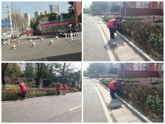 活动中,青年志愿者们身着“红马甲”,手持扫帚、簸箕、铲子等清洁工具,按照区域划分,分工合作,集中清扫校园内卫生死角、草丛的垃圾纸屑、路面烟头等。