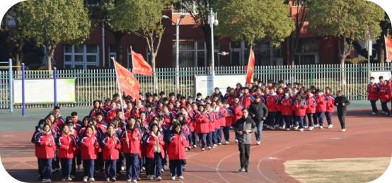 比赛伊始,两个学校共六个年级的同学们在候场区快速集合、整装待发,各班统一身穿冬季校服,列队严整,纪律严明。随着起跑口令的响起,各班学生迈着有力的步伐,跟着音乐节奏,精神抖擞地在跑道上奔跑。各班响亮激昂的口号声此起彼伏,充分展现班级、年级积极进取的精神风貌。经过长期坚持不懈的苦练,学生们昂扬的精神和整齐划一的动作赢得评委的高度评价。