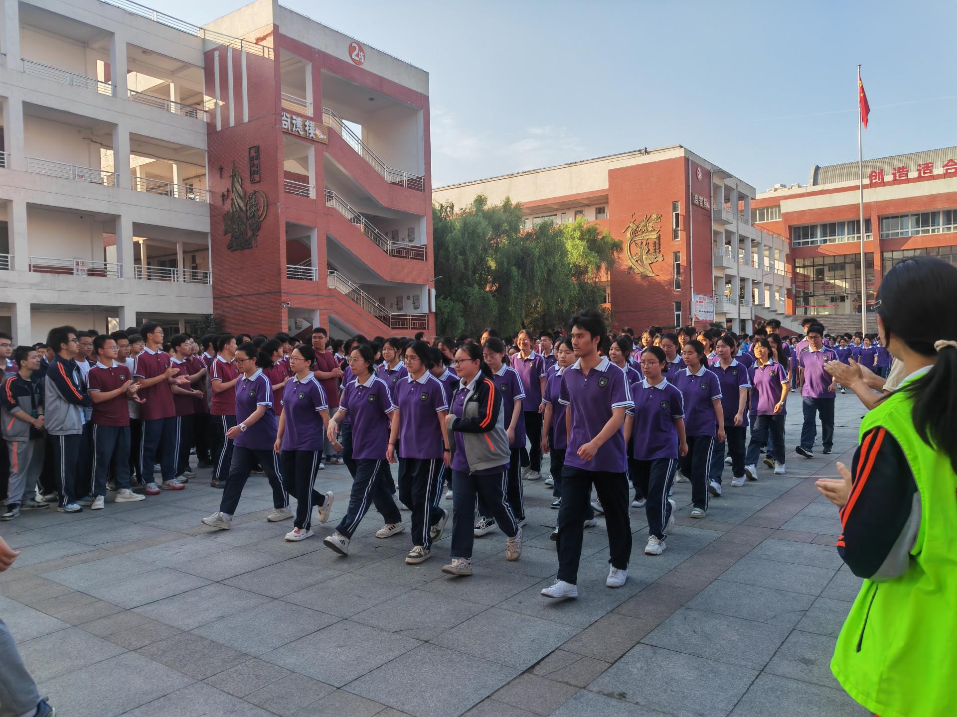 典礼尾声,感人的欢送仪式将气氛推向高潮。高一高二学生整齐列队于通道两侧,以掌声与祝福为学长学姐壮行。在高一和高二两位学妹和学弟深情演唱的《相信我们会创造奇迹》的动人旋律中,高三学子挥手告别,在学弟学妹的欢呼声中迈向崭新人生篇章。