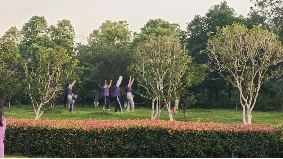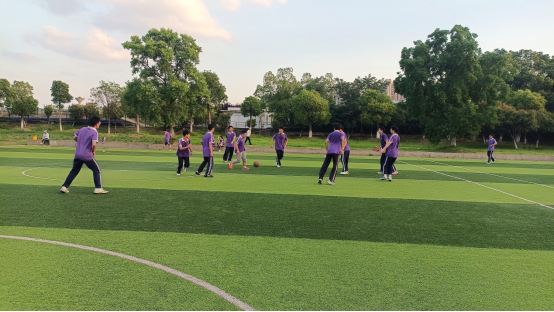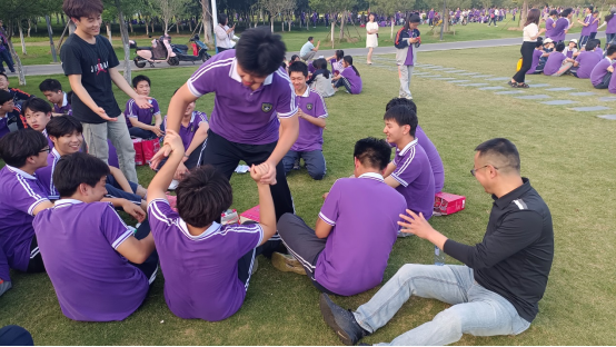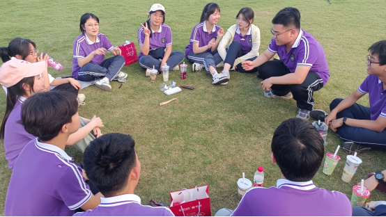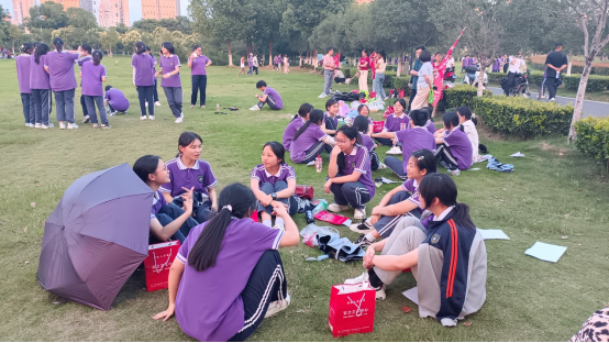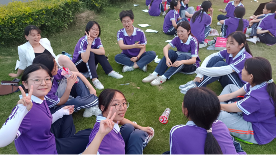 傍晚的槐荫公园空气清新、绿意盎然。同学们在班主任的带领下,很快到达公园指定的集结点。随后,各班开展了各种各样的放松调试活动:唱歌、跳舞、踢球、飞气球、击鼓传花、斗鸡等各种趣味互动,让同学们释放了压力,减轻了焦虑。相比于校园内的放松活动,同学们明显更加喜欢校园外的大自然,一切都那么轻松,一切都那么和谐,一切都那么自然。