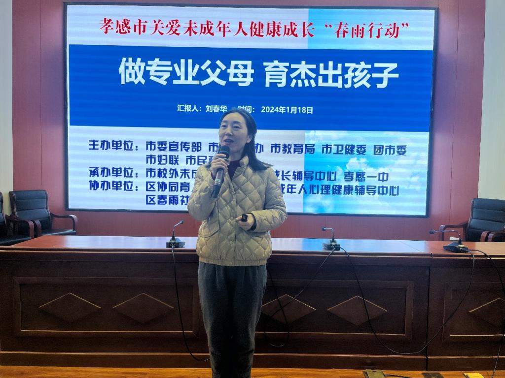 2024年1月18日下午,孝感一中邀请了孝感市校外未成年人心理健康成长辅导中心副主任、孝南区中小学心理健康教育辅导中心副主任刘春华老师,为300余名学生家长讲授心理健康教育和家庭教育指导课程。