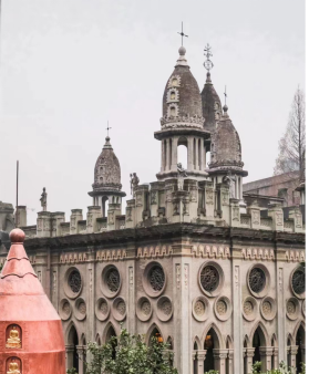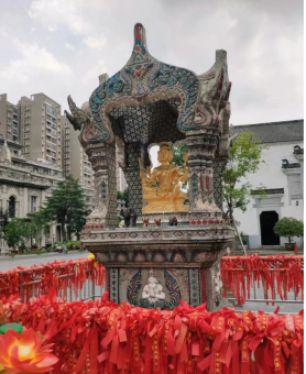 最后一站我们来到古德寺。与传统佛寺红墙黄瓦、飞檐翘角不同的是,古德寺混合了欧亚宗教建筑特色,融合东西方建筑风格于一身,独树一帜,有"汉传佛寺第一奇观"之称。