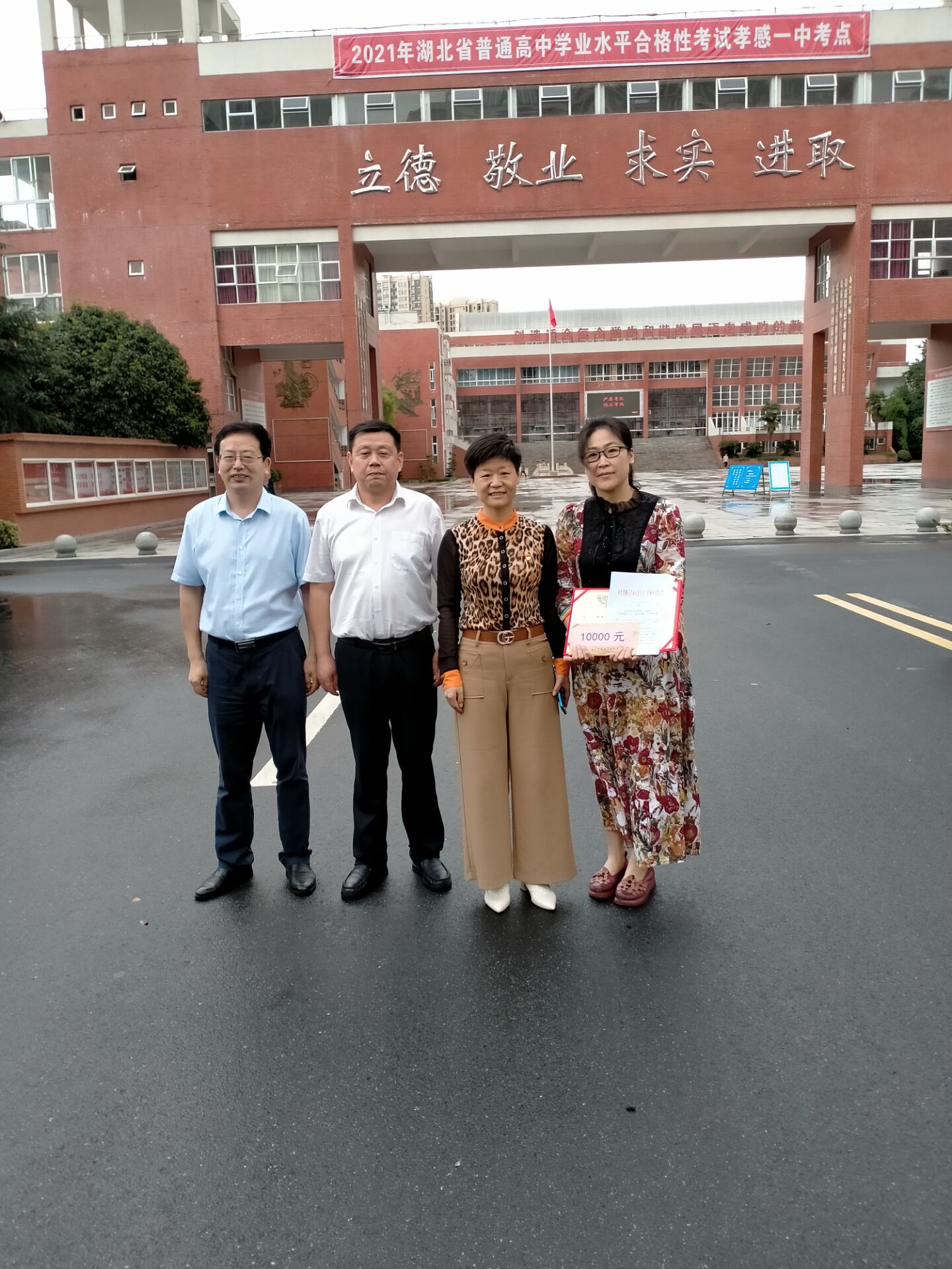 7月2日下午,孝南区区委组织部部长李三、区教育局局长刘向东等来到我校,向我校教师谈小平颁发了孝南区第三届“突出人才贡献奖”奖状、奖金。李部长、刘局长分别向谈老师表示祝贺,并勉励她在今后的教学中再接再厉,做出更大的成绩,再立新功,为孝南区争光。谈老师表示一定会努力工作,用实际行动来感谢党与政府的关心与厚爱。梅校长现场向上级领导简要介绍了我校发展及高考情况。