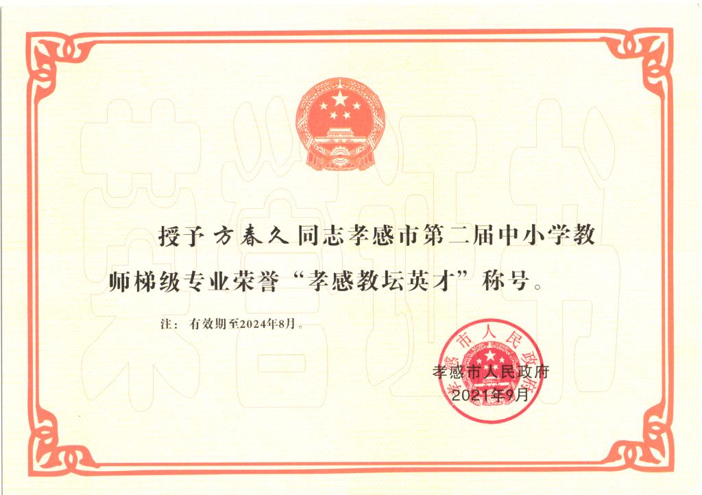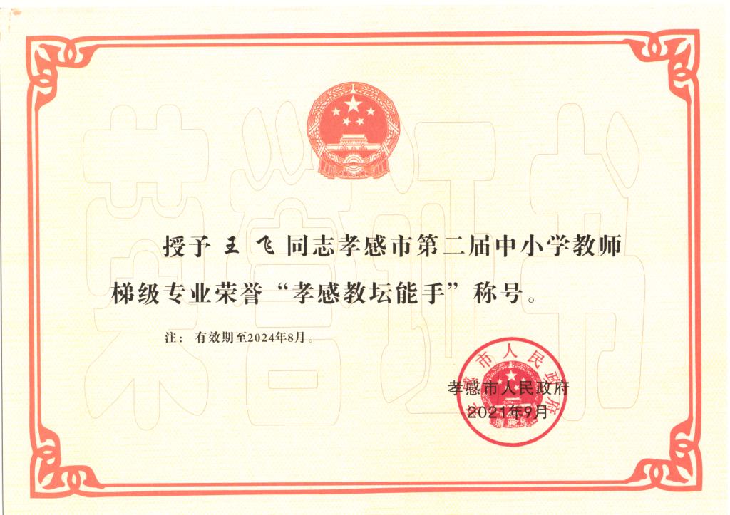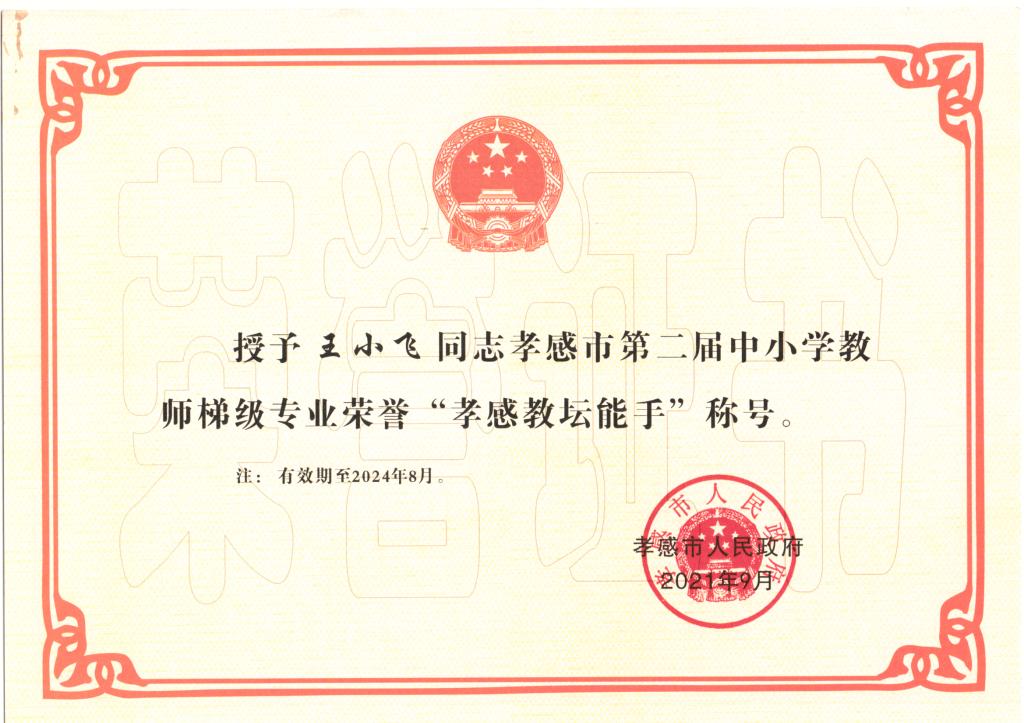 热烈祝贺我校部分教师喜获孝感市第二届中小学教师梯级专业荣誉称号