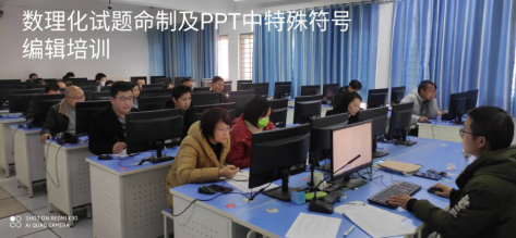 培训在新微机房进行,由信息技术教师乔爱军主讲。结合教学应用实际需要,此次培训的内容为“数学、物理、化学三个学科在试题命制及PPT课件制作中特殊符号的编辑”。